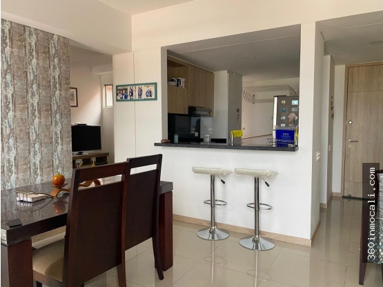 Venta de amplio y moderno apartamento ubicado en el barrio quintas de son simon, al sur de cali, en un piso 12 con ascensor, con area construida de 92 m2, cocina tipo americana, sala, comedor, baño social, balcon con vista panoramica, habitacion principal con vestier y baño, dos habitaciones auxiliares con closet, baño compartido, estudio, sala de tv, zona de oficios, parqueadero doble lineal en sotano.